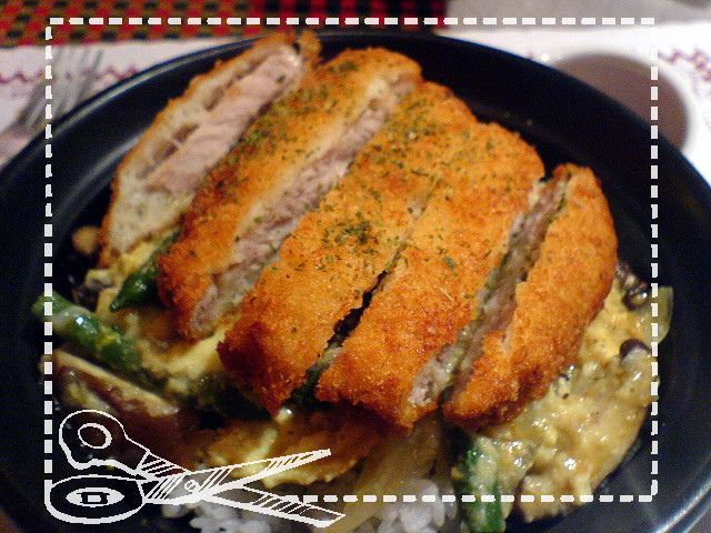 我點了香酥豬排佐日式洋蔥薑味醬汁飯...豬排裏有夾起司哦!