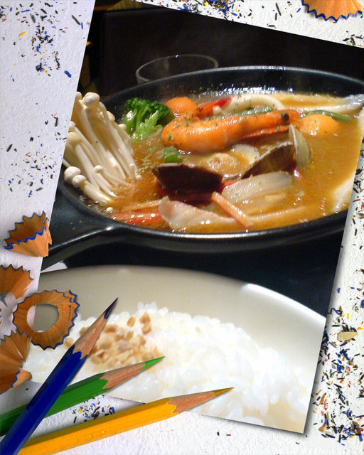 友人點的是蠔油沙茶鯛魚海鮮煲佐飯
