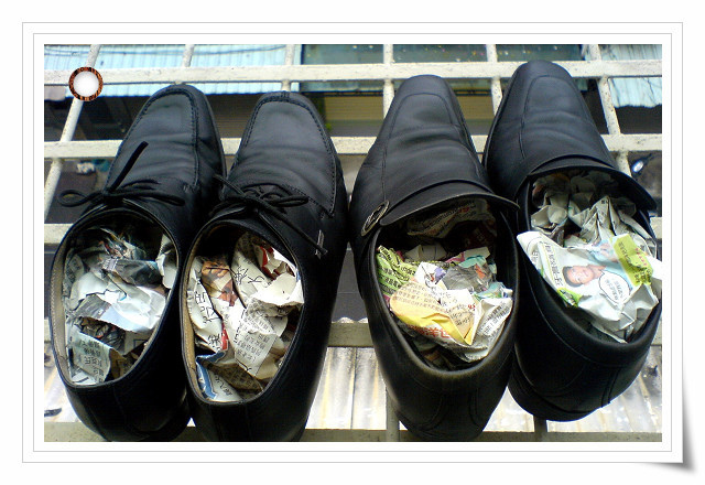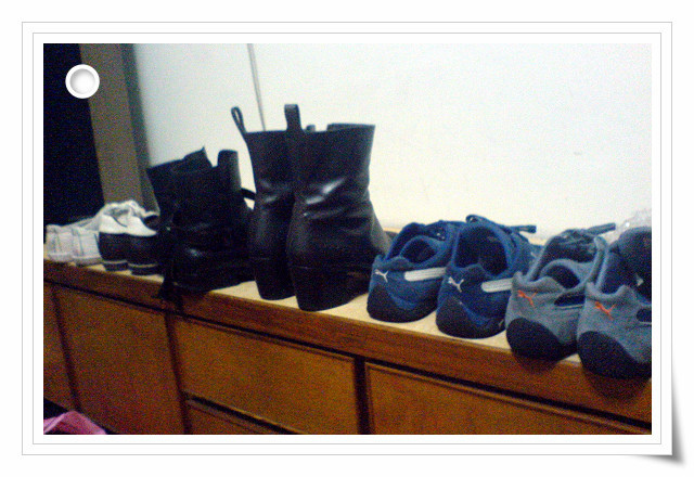 因為風太大了..把放在鞋架上鞋及放在鞋盒內的全都吹倒在地上..濕的濕,泡水的泡水!!