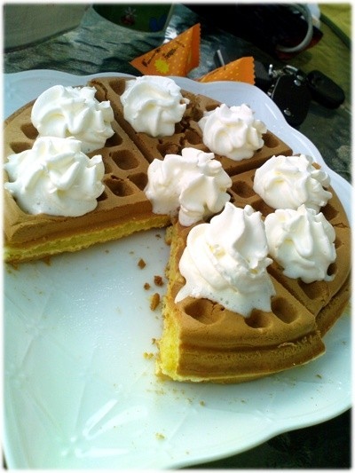 鬆餅上的奶油超級水...拿起來後就滴到褲子上...氣!!!!!!!