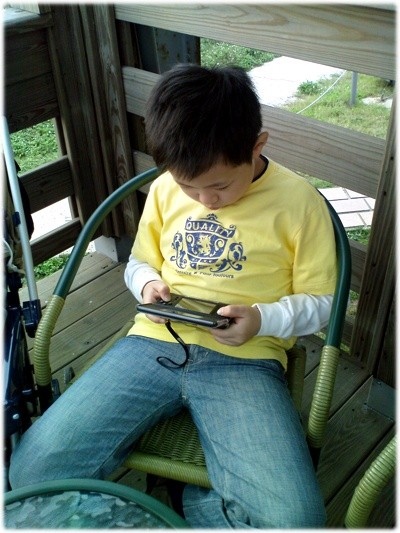這種山間咖啡館並不適合小孩來...所以只能屈在角落打電動~