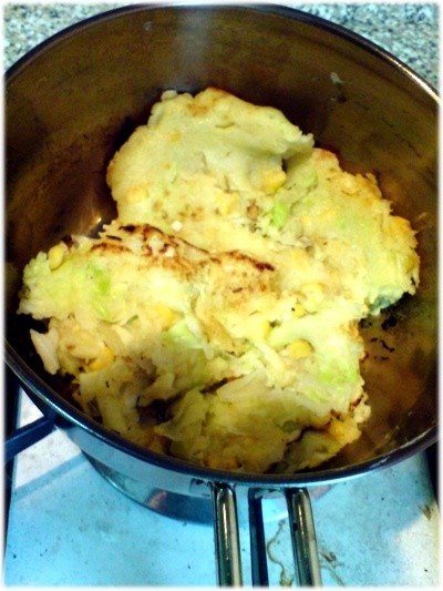 結果...由於鍋子太小不易翻面..變成支離破碎餅~~