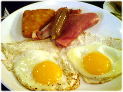 重頭戲是..1根德國香腸+1塊薯餅+1片火腸+炒蛋