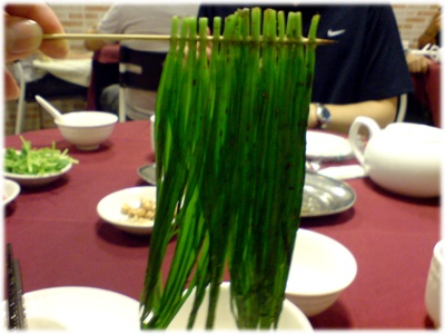上菜後..同事用筷子把韭菜上的油瀝下來後..當場傻眼!!