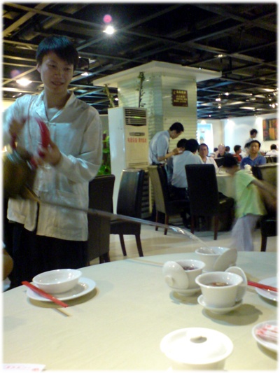 廣州人吃飯前一定要先喝茶..不過這家餐廳倒茶小弟像是在表演特技